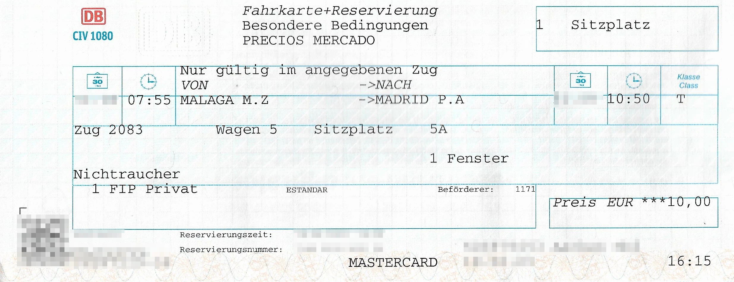 Example ticket AVE from Malaga to Madrid